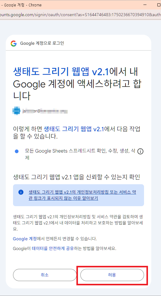 제작된 웹앱을 처음 실행할 때 구글 보안 정책에 따라 '권한 승인' 과정이 필요합니다. 아래의 단계를 따라 한 번만 설정을 완료하면 이후에는 편리하게 사용하실 수 있습니다.
